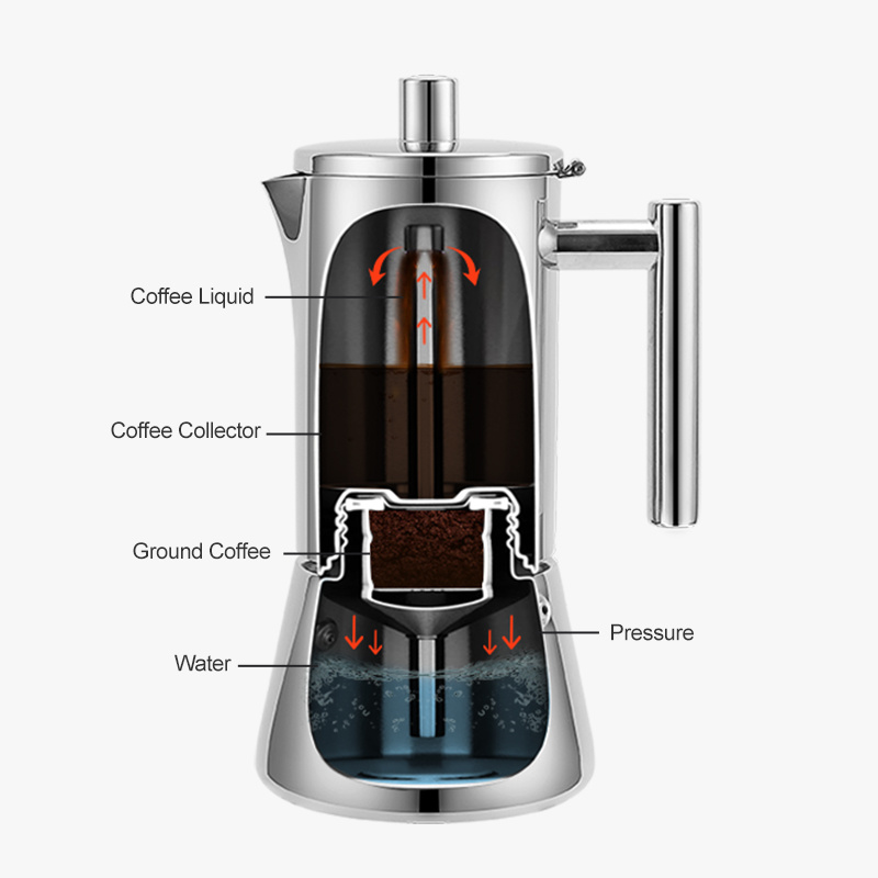 Beyond capacity advantages, the Mirror Finish Moka Pot also offers a wide range of styles, breaking the monotony of traditional moka pot designs: